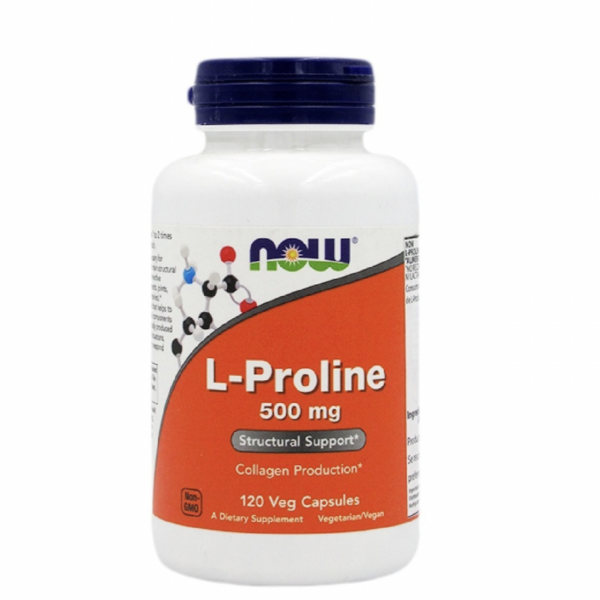 L-Proline 120 Cápsulas Producción de Colágeno 500mg. Now