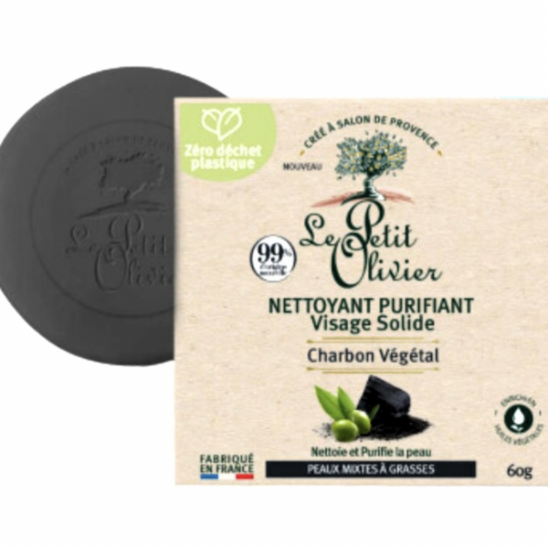 Limpiador Facial Sólido Carbón Vegetal 60g. Le Petit Olivier