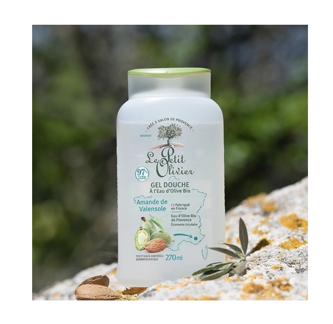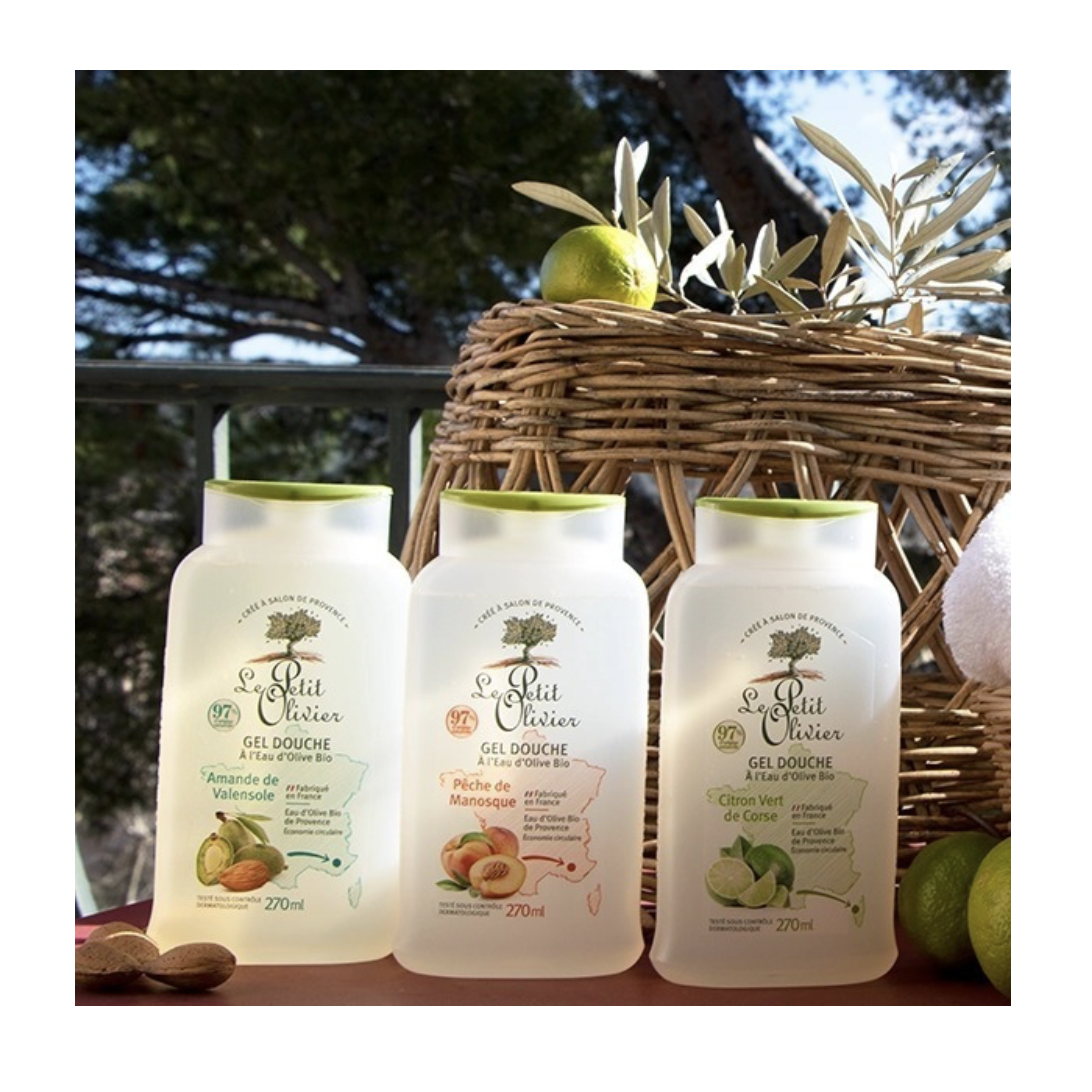 Para participar en la economía circular, Le Petit Olivier sustituye parte del agua de sus geles de ducha por agua de oliva ecológica del Valle de Baux de Provenza, que habitualmente no se utiliza. Además sus envases son reciclables.