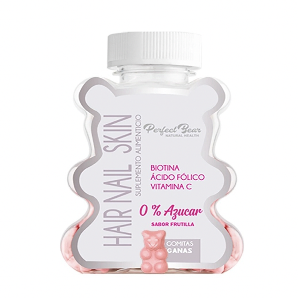 Es un osito masticable de exquisito sabor, fortificado con vitaminas y minerales 100% naturales, cuidadosamente seleccionadas especialmente para fortalecer tu cabello y uñas, esta vez con una versión sin azúcar, endulzado con maltitol, para evitar alzas de azúcar en sangre y de igual forma obtener todas las vitaminas y minerales de la versión clásica.