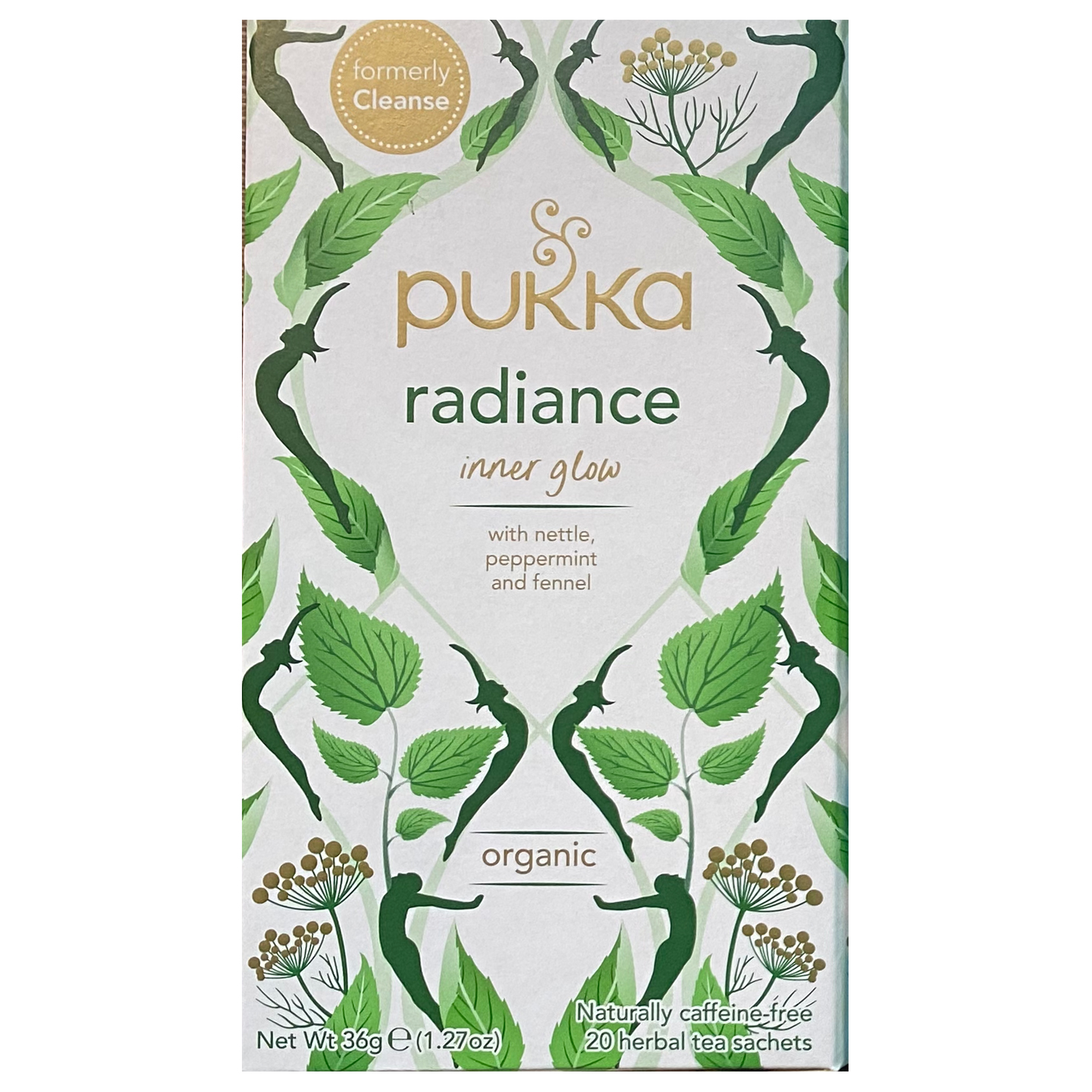 Pukka Hierbas con propiedades antiinflamatorias como la ortiga y el hinojo, complementadas con toques refrescantes de menta y aloe vera.