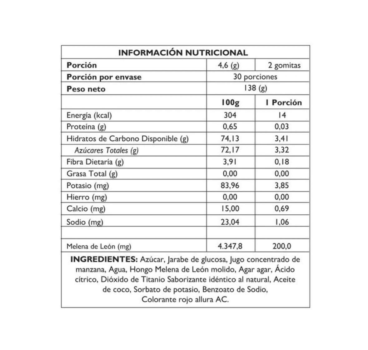 La dosis diaria son 2 gomitas.