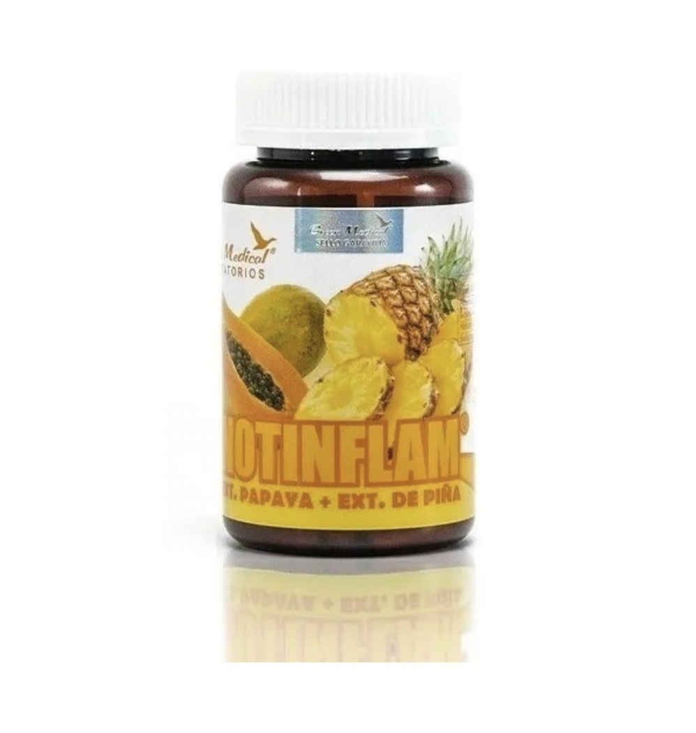 Notinflam 500mg. son cápsulas de extracto de Papaya y extracto de Piña, Gelatina y Agua purificada